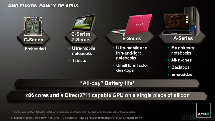Earlier today, Israeli website NGOHQ.com posted a series of slides from what it seems to be AMD Fusion APU presentation. According to HardOCP, this document is called “AMD Fusion Strategy Guide”. Dated May 17, 2011, the leaked presentation looks to be from an AMD event recently held in Abu Dhabi, United Arab Emirates.