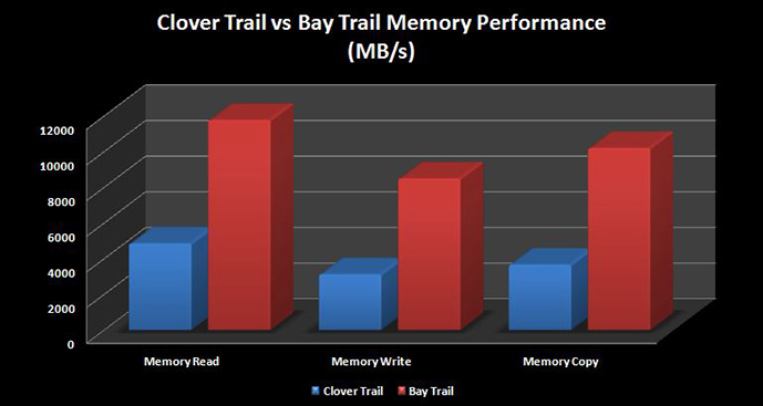 Then, we looked at some Windows-only benchmarks. For these benchmarks, we were most interested in seeing how Bay Trail stacks up in terms of performance against its predecessor, Clover Trail. After all, I believe many of you are interested to see what kind of improvements Bay Trail brings to Windows tablets. For this, we opted to test in AIDA64 and check out the memory, CPU and FPU performance tests that AIDA64 offers.