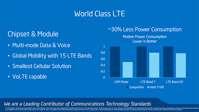 Following that, Hermann went on to talk about Intel’s LTE and the fact that it supports multi-mode data and voice and claims 15 LTE bands and global mobility. However, we still do not know how many simultaneous LTE bands a single device can support. He also talked about the fact that the 7160 is LTE capable and that they are merely waiting for their partners and carriers to implement it once the networks are ready.