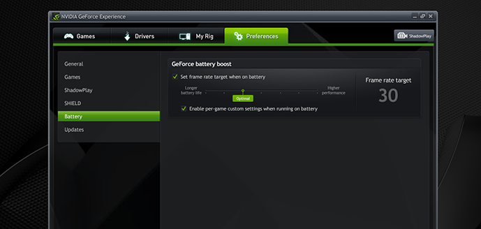The last but not least feature is Battery Boost, which is Nvidia’s newest and probably most important feature with the introduction of the 800M series. This feature allows gamers to extend their unplugged playable hours of gaming significantly based on adjusting a few features. Gamers can either set a frame target on their GPUs in order to reduce power consumption over the longhaul or they can tell the drivers to optimize based on battery life or performance. These power management settings will work in concert with the laptops already existing power management to further prolong the battery of the laptop, even though, when gaming, the GPU is generally the most power hungry component.